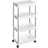 With a simple white look and four-piece design, this rolling cart from Rootz will help you tackle any storage problem. With 4 universal casters, you can send it anywhere, all the items you need will be at your fingertips. Buy this today and get your home organized again.