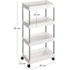 Meets your storage needs: Overall size is 40 x 22 x 86 cm (W x D x H), with 4 shelves available; height between shelves is 25 cm; raised edges prevent items from slipping; shelves are connected by click connections and the whole cart can hold up to 20 kg; 5kg per level.
