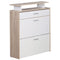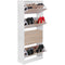 The sleek and functional shoe cabinet, designed with three spacious compartments for easy storage and organization of your shoes, featuring integrated handles and a modern white design that seamlessly blends with any decor style. With its practical features and compact dimensions, this cabinet is perfect for optimizing space in your home while keeping your footwear neatly arranged.
