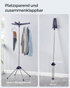 Rootz Portable Blue-Silver Washing Rack - Stainless Steel Stand - Plastic Foldable Stand - Lightweight - Compact - Easy Assembly - 65cm x 65cm x 150cm (Unfolded) - 5.5cm x 5.5cm x 182.5cm (Folded)