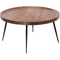 Beautifully combined: Stylish coffee table in the trendy industrial style. Thanks to the basket-like and open metal frame, the table brings a breath of fresh air to your living space. Snacks, remote control, magazines and more find their place on the round tabletop made of solid wood. Sit back and enjoy your television program, while the metal table has everything you need!
