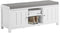 - Two handy flip drawers, 2 tiers in each drawer. Comfortable seat cushion in grey is removable.