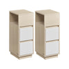 Rootz 2 Piece Narrow Bedside Table Set - Nightstand - Bedside Cabinet - Storage Solution - 30cm x 25cm x 65cm - Brown- White