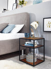 Introduce a touch of modern industrial style to your bedroom with our handcrafted bedside table, featuring three spacious shelves, a harmonious wood and metal combination, and impeccable craftsmanship that guarantees uniqueness and durability.