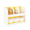 Organize your kids' space with this charming white yellow and white storage shelf. Featuring three storage compartments and plastic baskets, it keeps books and toys tidy.
