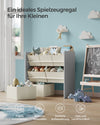 This Children's shelf with 7 storage boxes is the perfect solution for organizing toys and books. Made of MDF and non-woven fabric, this shelf is durable and easy to clean, making it ideal for kids' rooms.