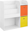 - It features 3 shelves, 2 storage compartments and 2 fabric drawers, providing ample storage space for the books, toys, etc.