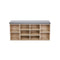 TAKE A SPACE: Do you regularly lose your balance when putting on your shoes? Sit comfortably on this padded shoe bench and tie your shoes effortlessly. The robust structure made of class E1 chipboard can hold up to 150 kg. The removable imitation linen cover is easy to clean