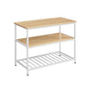 Upgrade your kitchen with this 3-tier shelf featuring a spacious worktop and sturdy steel frame. Ideal for storage and additional workspace.