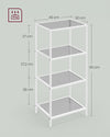 Organize your bathroom in style with The Rootz Bathroom Shelf, featuring 4 shelves for ample storage. Made with durable metal and glass, this shelf unit is both functional and aesthetically pleasing.