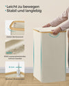 This laundry basket is designed to keep your laundry organized with its two compartments and a white lid.