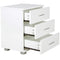 The sleek and modern White Veneer Nightstand, featuring three spacious drawers and a convenient shelf, perfect for organizing your essentials. With its clean design, easy maintenance, and ideal height for boxspring beds, this nightstand is a stylish and practical addition to your bedroom decor.