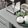 Optimal Storage SolutionsEquipped with two large compartments, including one hidden behind a stylish glass door, this cabinet provides ample space for appliances like microwaves, complete with convenient wire holes for easy setup.