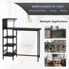 LOTS OF STORAGE SPACE: 3 shelves beneath table top, 1 shelf with 2 glass holders offer generous storage