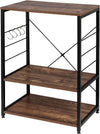 Enhanced Storage CapacityEquipped with three spacious shelves and four convenient hanging hooks, this organizer effortlessly accommodates your microwave, cookbooks, and other essential kitchen tools, keeping everything neatly in place.