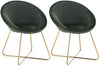 The Rootz Set of 2 Dining Chairs: Velvet Seats, Crossed Gold-Plated Metal Legs, Dark Green