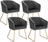 The Rootz Set of 4 Velvet Upholstered Kitchen Chairs with Metal Legs, Dark Gray