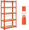 Rootz Storage Rack - With 5 Adjustable Shelves - Multi-tiered Shelving Unit - Space-saving Storage Shelf - Industrial Style Shelving - Heavy-duty - Steel - E1 Class MDF - Orange - 180 x 90 x 40 cm (H x L x W)